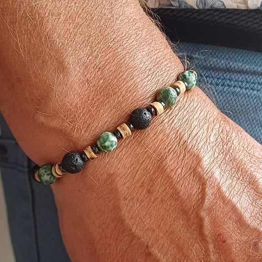 UitverkochtHeren kralenarmband van Mos Agaat en Lavasteen