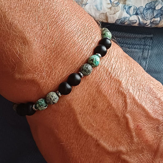 Heren kralenarmband van Afrikaanse Jade en Black stone