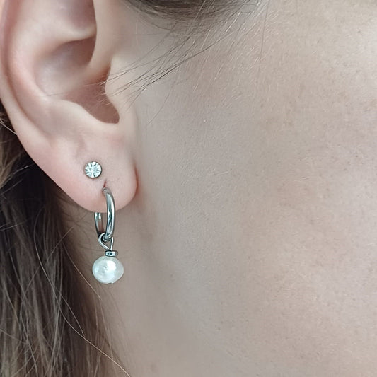 Parel in Gods Hand - Oorbellen met Zoetwaterparel & Hematiet