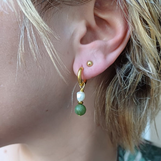 Oorbellen met Taiwanese Jade en Zoetwaterparels