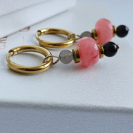 AanbiedingOorbellen met Red Marble en Melkkwarts