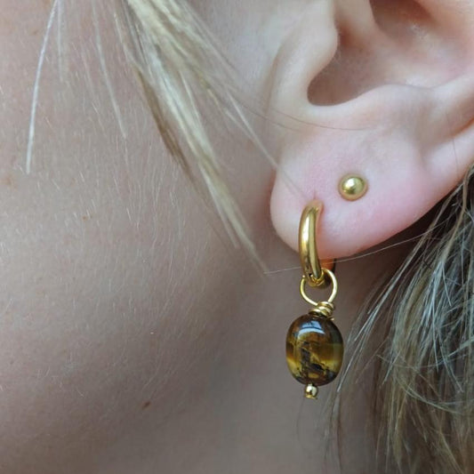 Stijlvolle oorbellen met hanger van Tiger Eye