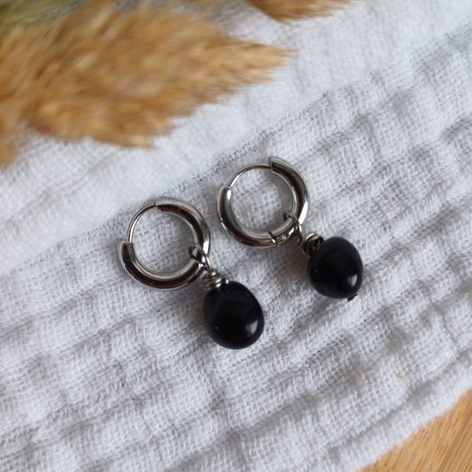 Stijlvolle oorbellen met hanger van Obsidiaan