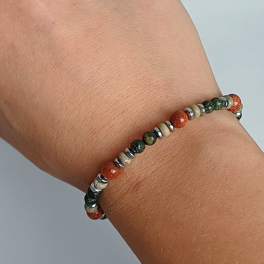 Minimalistische armband met goudsteen en mosagaat – elegant met karakter