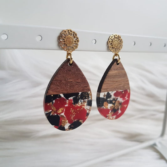 AanbiedingOorstekers met zwartrode resin bedels