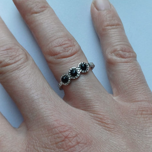 RVS ring met 3 natuursteentjes zwart