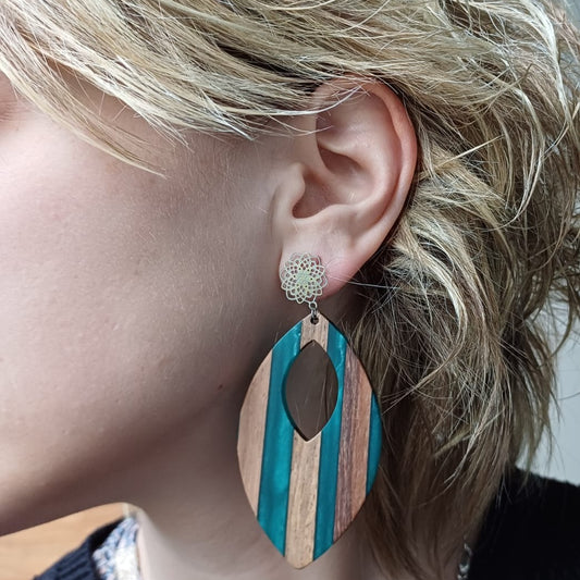 AanbiedingOorstekers met resin bedels met bladpatroon