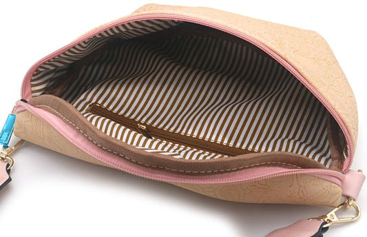 AanbiedingSchoudertasje lichtroze met bloemenprint