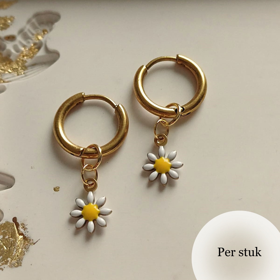 Geef jouw oorbellen een vrolijke en speelse uitstraling met deze mix & match oorbel bedel in de vorm van een bloemetje. De combinatie van witte bloemblaadjes met een zonnig geel hartje zorgt voor een frisse en lichte look die direct opvalt.